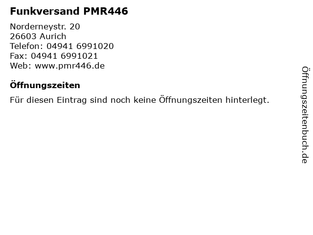 | Öffnungszeiten Funkversand PMR446 in Aurich anzeigen | |