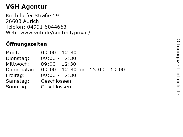 | Öffnungszeiten VGH Agentur in Aurich anzeigen | |