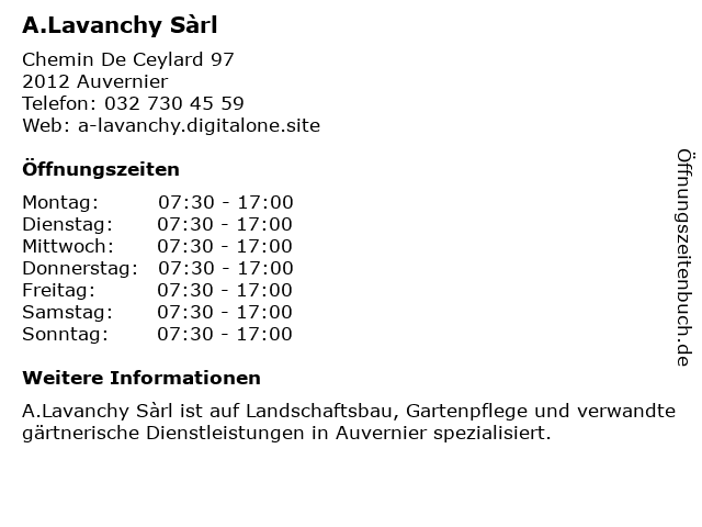 | Öffnungszeiten A.Lavanchy Sàrl in Auvernier anzeigen | |