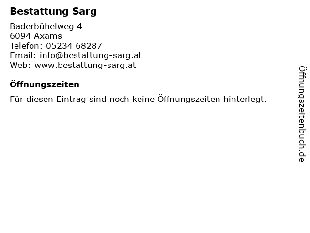 | Öffnungszeiten Bestattung Sarg in Axams anzeigen | |