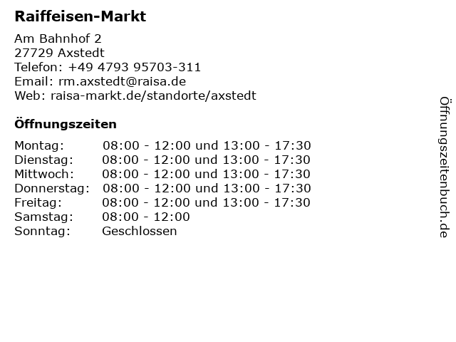 | Öffnungszeiten Raiffeisen-Markt in Axstedt anzeigen | |