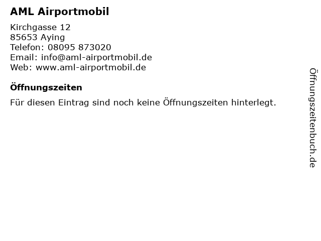 | Öffnungszeiten AML Airportmobil in Aying anzeigen | |