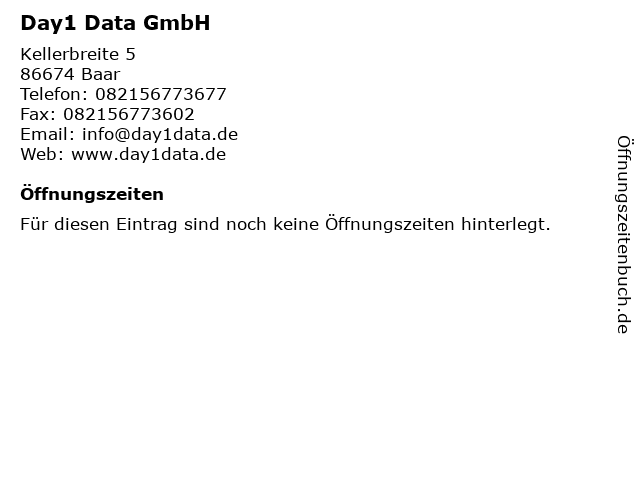 | Öffnungszeiten Day1 Data GmbH in Baar anzeigen | |