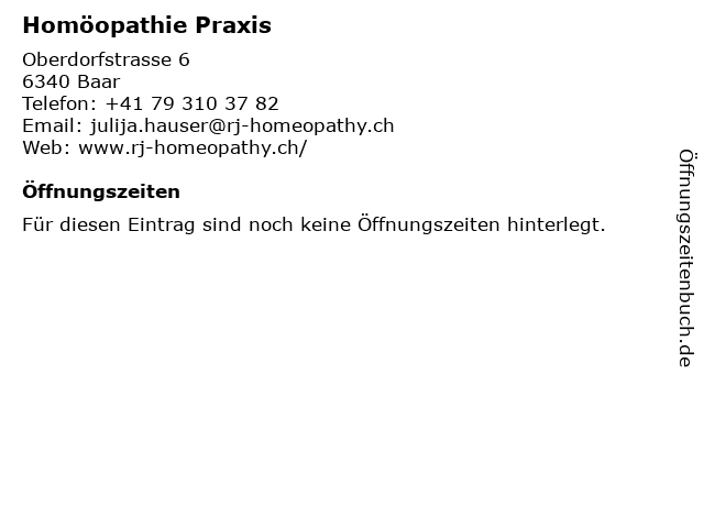 | Öffnungszeiten Homöopathie Praxis in Baar anzeigen | |