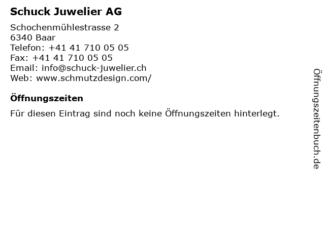 | Öffnungszeiten Schuck Juwelier AG in Baar anzeigen | |