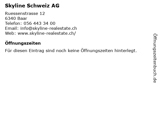 | Öffnungszeiten Skyline Schweiz AG in Baar anzeigen | |