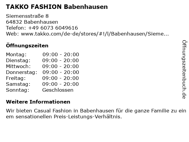 Beschreibung des Unternehmens:Sport trifft StyleSportlich durch 2024! Finde unsere Sportswear-Kollektion bei Takko Fashion Babenhausen! Zum Angebot |