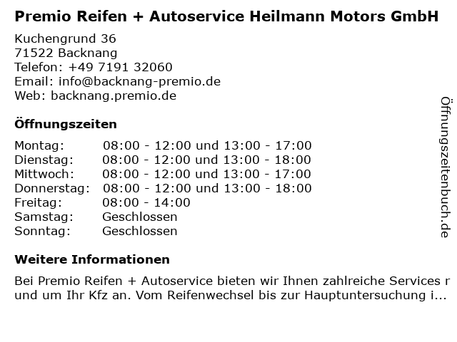 Branchen & Suchbegriffe zu Premio Reifen + Autoservice Heilmann Motors GmbH:auto service, autoservice, autowerkstatt, bremsenservice, heilmann, motors, premio, reifen, reifen kaufen, reifen service, reifenhändler, sommerreifen, tuning, winterreifen |