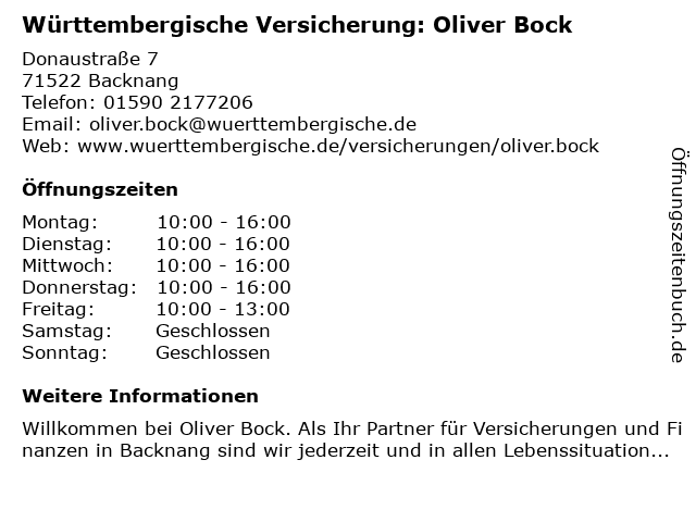 Branchen & Suchbegriffe zu Württembergische Versicherung: Oliver Bock:bock, oliver, versicherung, württembergische |