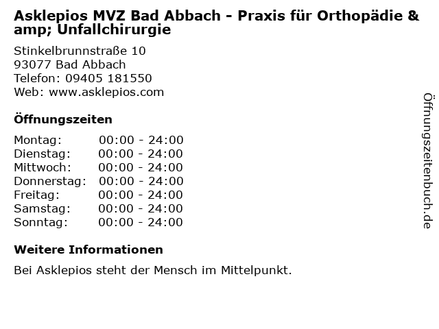 Branchen & Suchbegriffe zu Asklepios MVZ Bad Abbach - Praxis für Orthopädie & Unfallchirurgie:abbach, asklepios, bad, mvz, orthopädie, praxis, unfallchirurgie |
