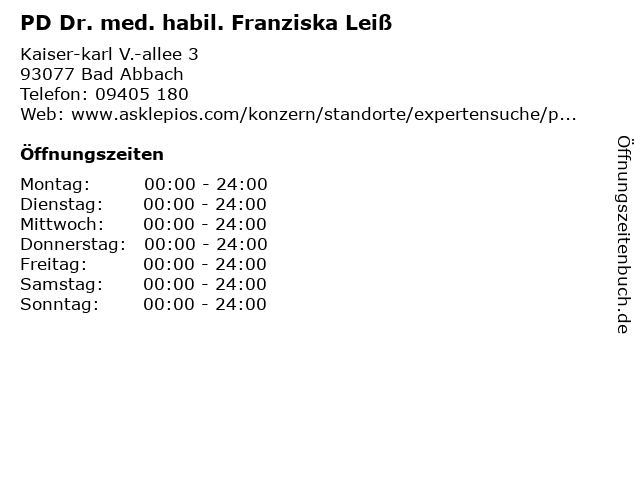 Branchen & Suchbegriffe zu PD Dr. med. habil. Franziska Leiß:dr., franziska, habil., leiß, med., pd |