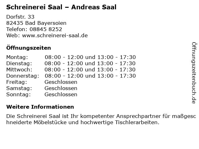 Branchen & Suchbegriffe zu Schreinerei Saal – Andreas Saal:andreas, saal, schreinerei, – |