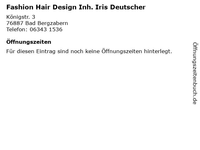| Fashion Hair Design Inh. Iris Deutscher anrufen | |