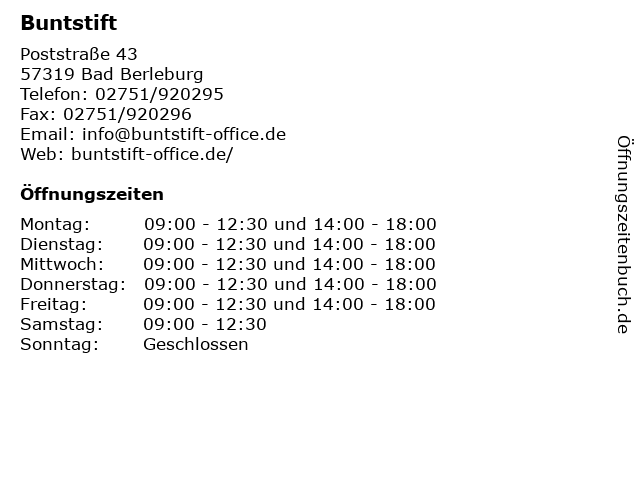 | Öffnungszeiten Buntstift in Bad Berleburg anzeigen | |