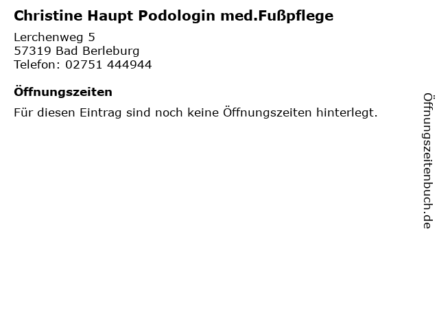 | Christine Haupt Podologin med.Fußpflege anrufen | |