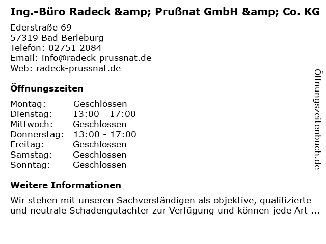 Branchen & Suchbegriffe zu Ing.-Büro Radeck & Prußnat GmbH & Co. KG:büro, ing., kfz-zulassungsstelle, prußnat, radeck |