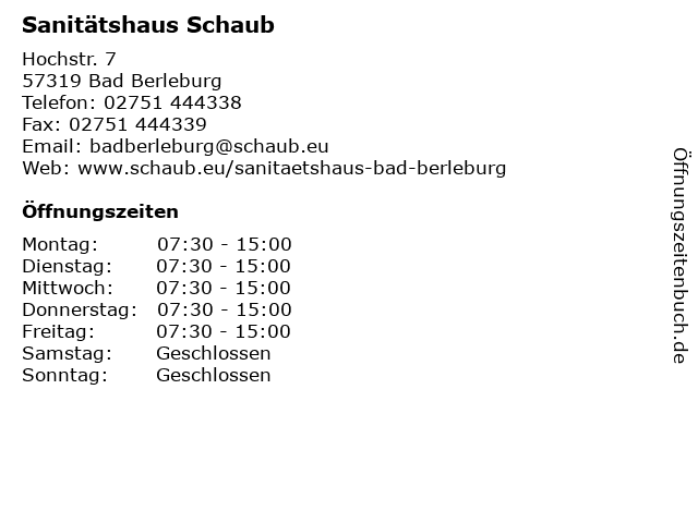 | Öffnungszeiten Sanitätshaus Schaub in Bad Berleburg anzeigen | |