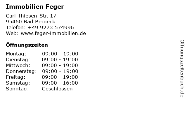 | Öffnungszeiten Immobilien Feger in Bad Berneck anzeigen | |