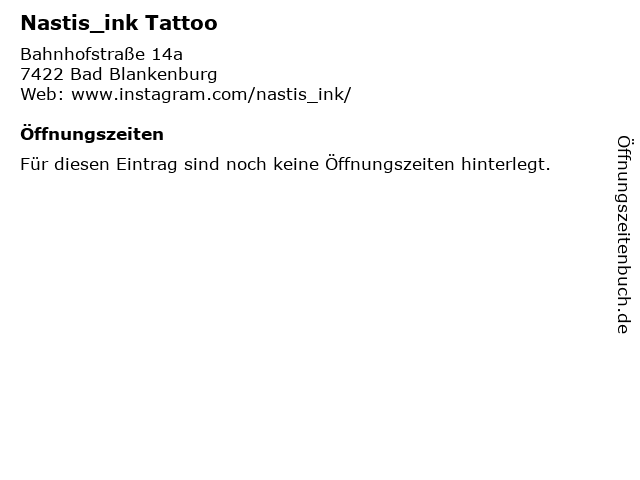 | Öffnungszeiten Nastis_ink Tattoo in Bad Blankenburg anzeigen | |