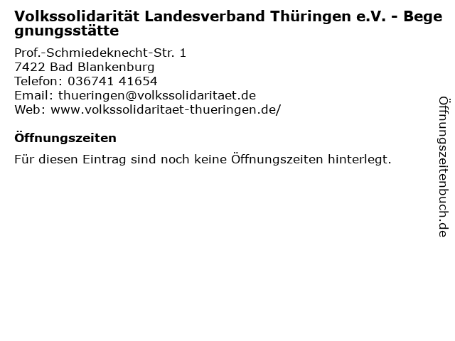 | Volkssolidarität Landesverband Thüringen e.V. - Begegnungsstätte anrufen | |