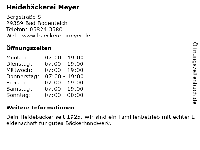 | Öffnungszeiten Heidebäckerei Meyer in Bad Bodenteich anzeigen | |