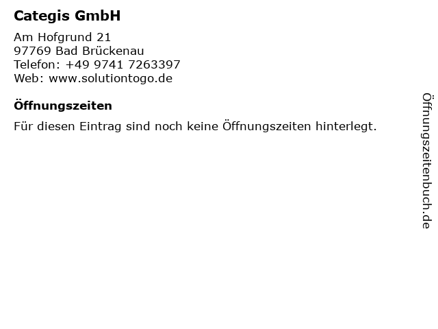 | Öffnungszeiten Categis GmbH in Bad Brückenau anzeigen | |