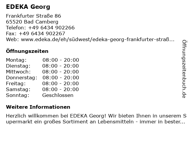 | Öffnungszeiten EDEKA Georg in Bad Camberg anzeigen | |