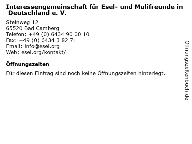 | Interessengemeinschaft für Esel- und Mulifreunde in Deutschland e. V. anrufen | |