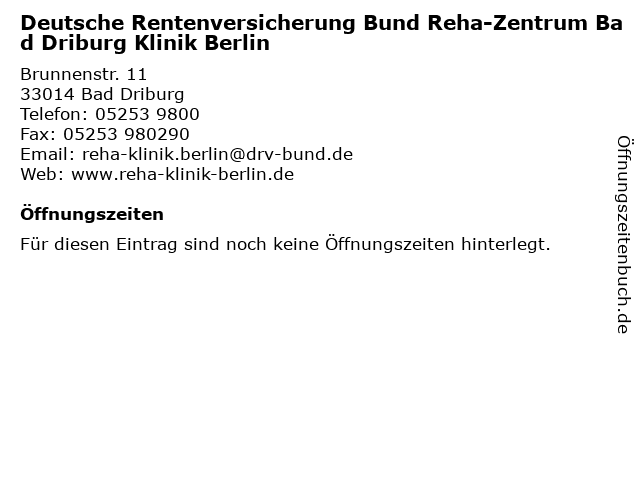 | Deutsche Rentenversicherung Bund Reha-Zentrum Bad Driburg Klinik Berlin anrufen | |