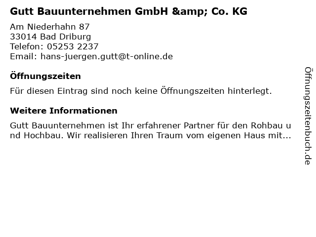 | Gutt Bauunternehmen GmbH & Co. KG anrufen | |