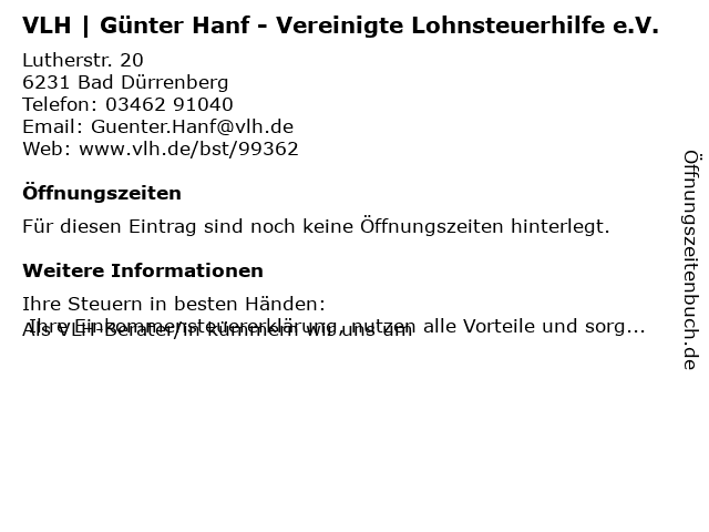 | VLH | Günter Hanf - Vereinigte Lohnsteuerhilfe e.V. anrufen | |