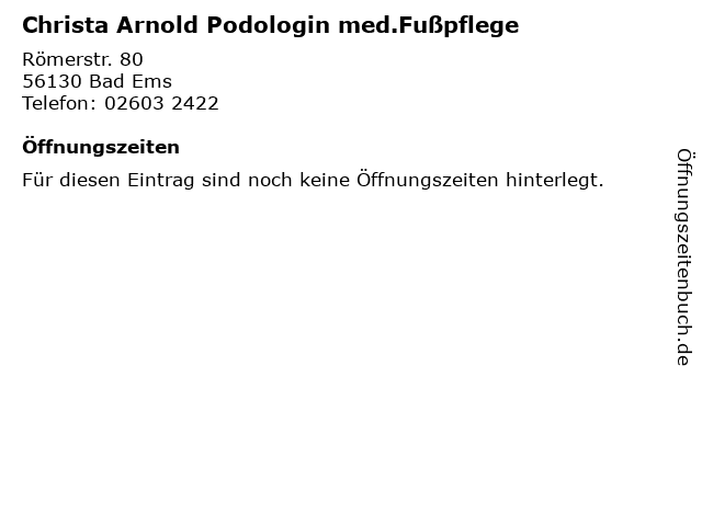 | Christa Arnold Podologin med.Fußpflege anrufen | |