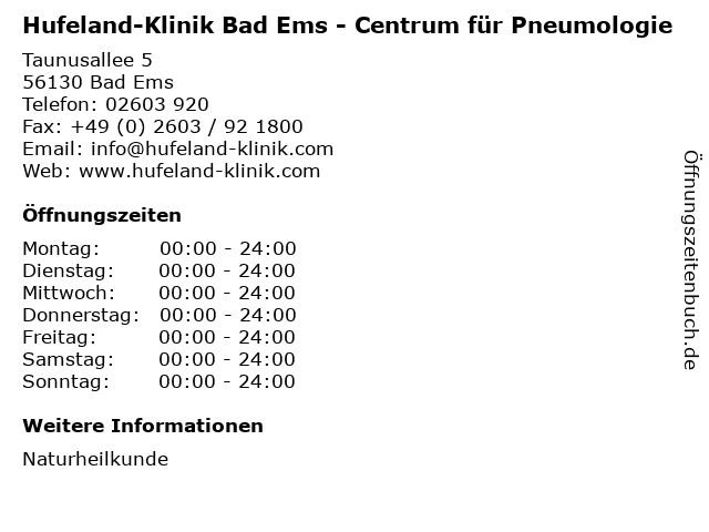 Branchen & Suchbegriffe zu Hufeland-Klinik Bad Ems - Centrum für Pneumologie:bad, centrum, ems, hospital, hufeland, hufeland-klinik, klinik, krankenhaus, naturheilkunde, notfallambulanz, pneumologie |