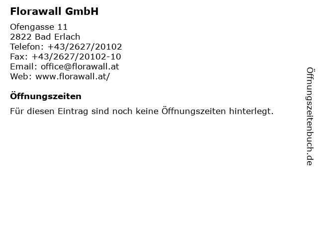| Öffnungszeiten Florawall GmbH in Bad Erlach anzeigen | |