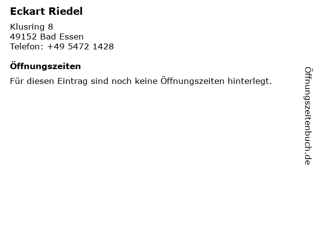 | Öffnungszeiten Eckart Riedel in Bad Essen anzeigen | |