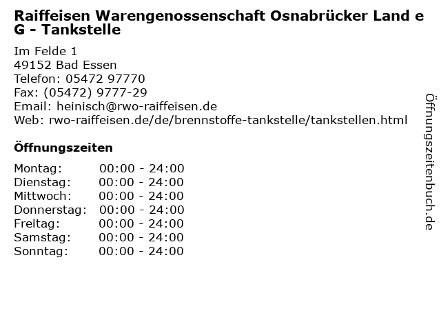 1 Raiffeisen Warengenossenschaft Osnabrücker Land eG - Tankstelle (Entfernung: 10,54 km) Bahnhofstr. 28 C, 49143 Bissendorf 2 Raiffeisen Warengenossenschaft Osnabrücker Land eG - Tankstelle (Entfernung: 18,53 km) Gewerbepark Ebbendorf 15, 49176 Hilter a.T.W. 6 |
