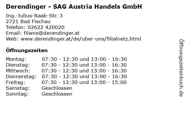 1 auner Motorradbekleidung und Zubehör Handels GmbH (Entfernung: 1,44 km) Hornbachplatz 2, 2721 Bad Fischau 2 Derendinger Handels GmbH - Autoteile (Entfernung: 1,60 km) Ing. Julius Raab Straße 3, 2721 Bad Fischau 5 Peter Ofner GmbH (DIRAK Austria) (Entfernung: 2,86 km) Industriestraße 336, 2722 Weikersdorf am Steinfelde 6 |