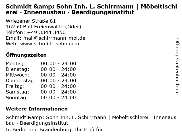 Branchen & Suchbegriffe zu Schmidt & Sohn Inh. L. Schirrmann | Möbeltischlerei · Innenausbau · Beerdigungsinstitut:beerdigung, beerdigungen, beerdigungen bad freienwalde, beerdigungsinstitut, bestatter, bestattung, bestattungen, bestattungsinstitut, böden, decken, fenster, handwerk, innenausbau, küche, küchen, l., möbel, möbeltischlerei, schirrmann, schmidt, sohn, tischler, tischlerei, tischlereiarbeiten, türen, · |
