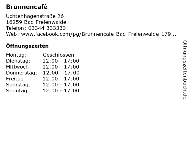 | Öffnungszeiten Brunnencafè in Bad Freienwalde anzeigen | |