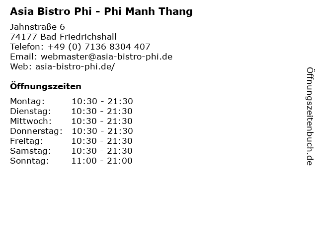Branchen & Suchbegriffe zu Asia Bistro Phi - Phi Manh Thang:asia, bistro, essen, gastronomie, getränke, grill, hauptgerichte, küche, manh, phi, restaurant, salate, thang, vorspeisen |