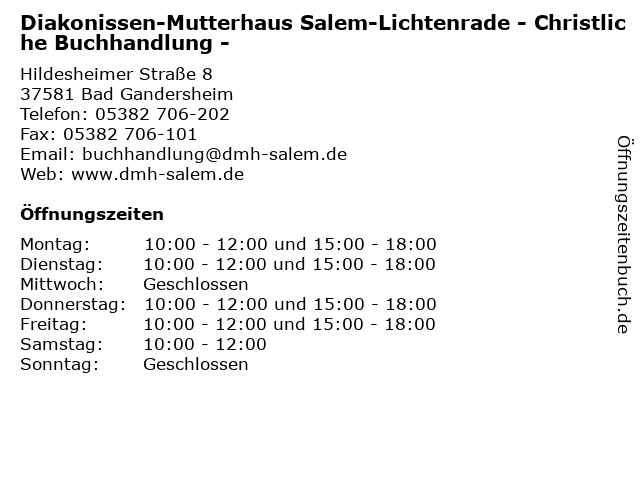 Branchen & Suchbegriffe zu Diakonissen-Mutterhaus Salem-Lichtenrade - Christliche Buchhandlung -:andachtsbücher, antiquariat, bibelbände, bibeln, buchhandlung, cards, cd, cd´s, christliche, christliche literatur für jedes alter, diakonissen, geschenkartikel, kalender, lexika – karten zu versch. anlässen, lichtenrade, mutterhaus, poster, salem |