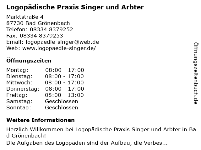 Branchen & Suchbegriffe zu Logopädische Praxis Singer und Arbter:arbter, logopädische, praxis, singer |