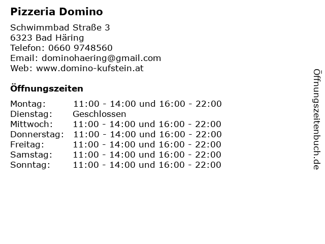 | Öffnungszeiten Pizzeria Domino in Bad Häring anzeigen | |