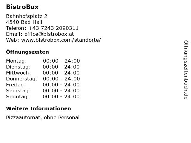 Öffnungszeiten BistroBox in Bad Hall anzeigen | |