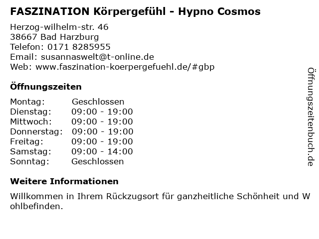 Branchen & Suchbegriffe zu FASZINATION Körpergefühl - Hypno Cosmos:cosmos, faszination, hypno, körpergefühl, schönheitssalon |