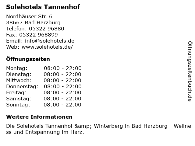 | Öffnungszeiten Solehotels Tannenhof in Bad Harzburg anzeigen | |