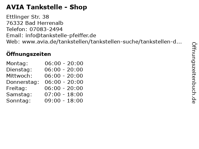 | Öffnungszeiten AVIA Tankstelle - Shop in Bad Herrenalb anzeigen | |