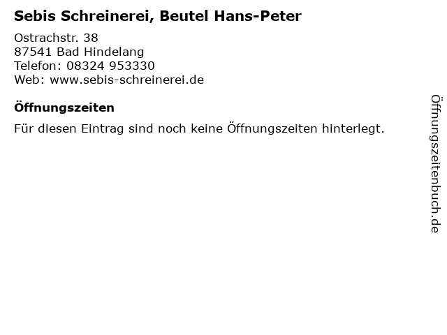| Sebis Schreinerei, Beutel Hans-Peter anrufen | |