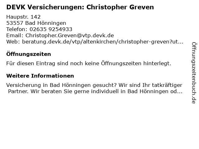 | DEVK Versicherungen: Christopher Greven anrufen | |