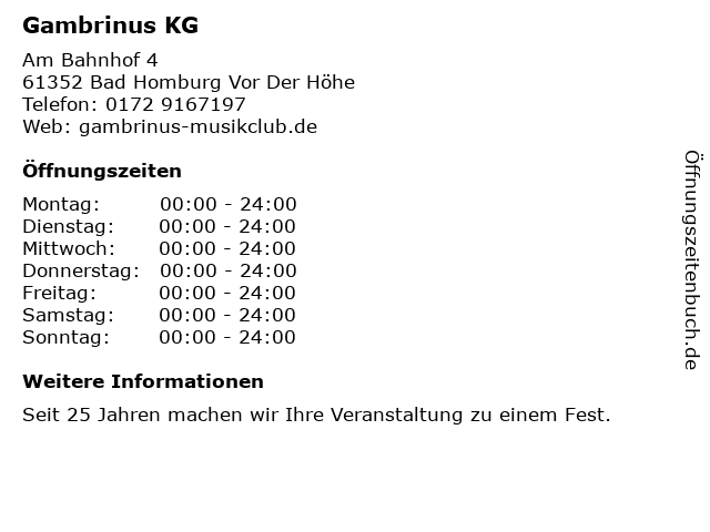 1 Das Boot - Musiklokal (Gambrinus KG Michael Thalhofer ) (Entfernung: 3,46 km) Holzwegpassage 3-9, 61440 Oberursel 4 Heerwagen Thomas - 1a Music Mobile Diskothek (Entfernung: 9,02 km) Am Kronberger Hang 3, 65824 Schwalbach 6 |